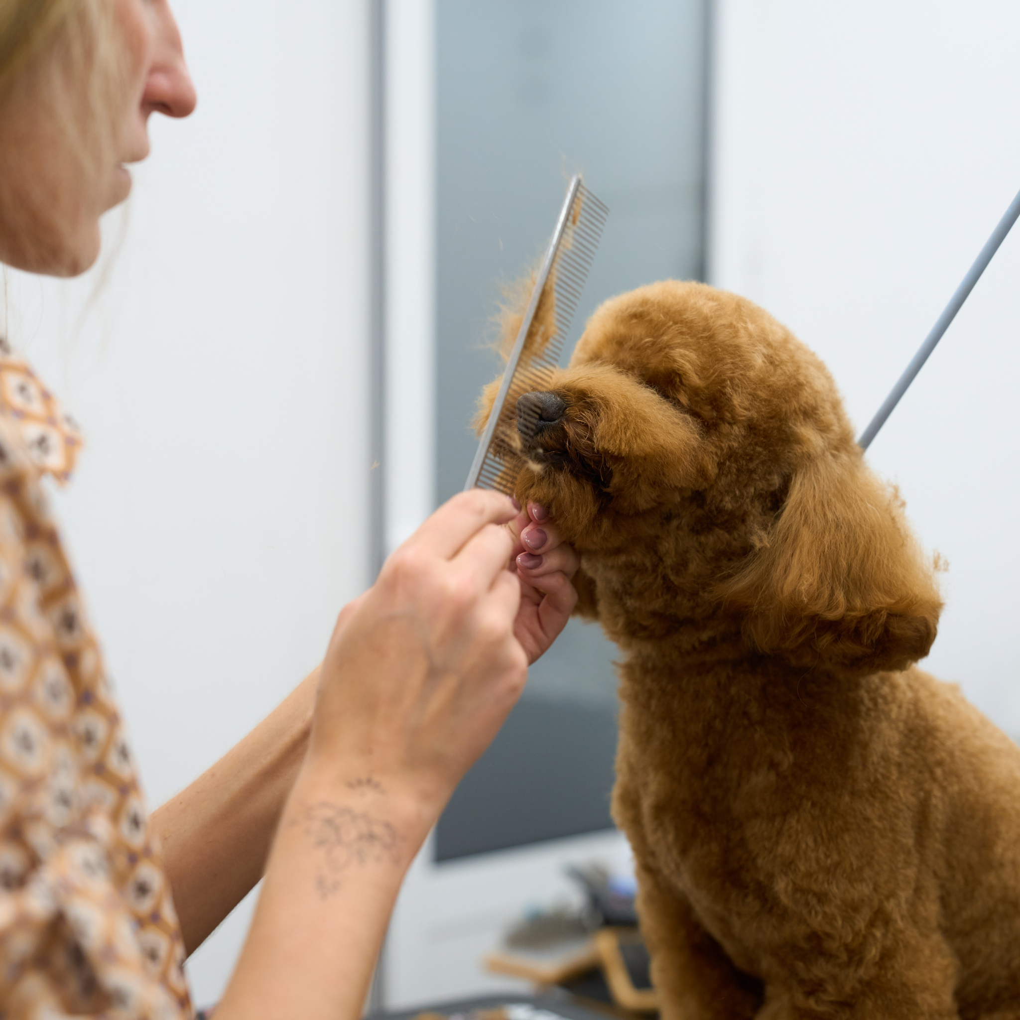 For most poodle and oodle-type coats, we recommend grooming every 4–6 weeks. Regular grooming helps maintain coat health and prevents matting.